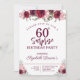 Haz que la celebración del cumpleaños de tu ser querido sea un evento inolvidable con nuestra colección de Fiesta de Cumpleaños Sorpresa para Mayores. El diseño elegante y sofisticado cuenta con hermosos arreglos florales en tonos burgundy y azul polvoriento, complementados con delicada vegetación de eucalipto y elementos de acuarela de flores pastel. La escritura agrega un toque de modernidad y diversión al diseño, lo que lo convierte en la elección perfecta para una fiesta sorpresa.