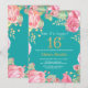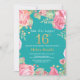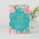 Invitación de 16º cumpleaños a mujeres por sorpresa floral. Flor Floral Botánica de acuarela. Brillantina dorada. Flores Florales De Peonies Rosados. Cumpleaños de la Chica de Niños Lady. Fondo verde azulado Aqua Turquesa. Para una mayor personalización, haga clic en el botón "Personalizar" y utilice nuestra herramienta de diseño para modificar esta plantilla.