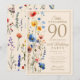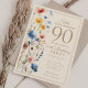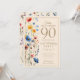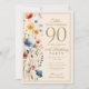 Un diseño de invitación para una fiesta de "cumpleaños número 90" con tipografía elegante y un motivo floral de acuarela.
