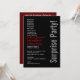 Este diseño moderno en negro, plateado, rojo y blanco es una manera elegante de invitar a sus invitados a un fiesta de 40 años SORPRISE. Todo el texto es totalmente personalizable. Puede cambiar el color de fondo o el de texto para un aspecto diferente. Te recomiendo el papel metálico de color helado premium, que te dará a tus invitaciones un brillo festivo y brillo o el papel de acabado de lino, lo que le da a tu invitación un toque más elegante.