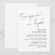 Esta es la tarjeta de invitación de la fiesta de bodas de elopement, con diseño de letra minimalista / minimalismo (Sorpresa, nos escapamos)