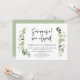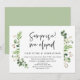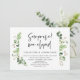 Moderno guion negro, verano jardín verde con hojas tema, tarjeta de invitación de boda de fuga (Sorpresa, nos escapamos). Es perfecto para su recepción de boda de fuga / celebración de post boda. Agregue sus detalles en fuente / letra negra a juego.