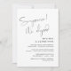 Esta es la tarjeta de invitación para la fiesta de boda íntima, con diseño minimalista / letra minimalista (Sorpresa, nos escapamos)