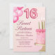 Celebrate in style with this elegant adult 16th birthday invitation featuring a beautiful pink cake and fun pink balloon numbers. Perfect for an elegant and memorable celebration, this design adds a touch of fun and sophistication to your special day. Ideal for women looking to celebrate a milestone birthday in style!