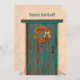 Personalize this design featuring a colorful chile pepper wreath tied with a raffia bow on a rustic wood door at an old adobe house. The original painting was inspired by the chile ristras and wreaths the artist hung at her home in New Mexico. Ristras are a symbol of welcome said to bring good health and good luck.