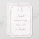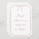 Pregunte a sus damas de honor con estilo con esta elegante y atemporal tarjeta de rosa polvorienta con un encantador ilustracion de arco y delicado tipo de letra. El texto del personalizable te permite añadir un toque personal, haciendo de esta forma una forma sincera de invitar a tus amigos a ser parte de tu día especial. Con su diseño suave y femenino y su frontera de inspiración vintage, esta carta rebosa sofisticación y es perfecta para cualquier tema de novias, desde clásico hasta caprichoso. Ya sea que esté planeando una reunión íntima o un gran romance, esta tarjeta de presentación de la dama de personalizable le agrega un toque de gracia y sentimiento a las invitaciones de su fiesta nupcial.