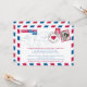A fun creative Post Wedding Reception to send to all your guest announcing your destination wedding. Red and Blue striped Airmail design with world map. A red heart is over SPAIN. Add your favorite photo as a stamp design and a Just Married Stamp with your location is added. Perfect for your destination wedding. If you have a different location please email paula@labellarue.com BEFORE YOU CUSTOMIZE OR PLACE AN ORDER so I can create a new design for you to work with.