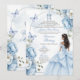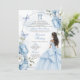 Invitación Spanish Dusty Blue Floral Princess Silver 15 Años
