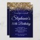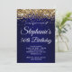 Invitación Sparkly Gold Glitter Navy Gradient 50th Birthday