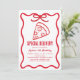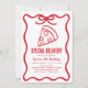 This cute "special delivery" kid's birthday invitation features hand-drawn illustrations of a bow and slice of pizza surrounded by a red wavy frame. The reverse side features a white background with a red gingham plaid. Personalize it for your needs. You can find matching products at my store.