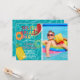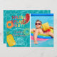 Una colorida fiesta de bienvenida con salpicaduras Invitación para una celebración de cumpleaños de la piscina de frutas de verano. Ideal para niños o chicas o fiestas neutrales en cuanto a género. Personaliza esto con tu propia foto, nombre e información de fiesta. Se puede hacer que el patrón de agua de la piscina sea mayor o menor y mover las flotas alrededor.