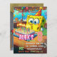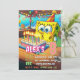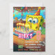 Bold, colorful text elements are arranged throughout the design, highlighting the birthday child’s name, age, date, time, address, and RSVP details. The overall style is whimsical, energetic, and inviting—perfect for a kids’ birthday party invitation, printable card, or digital party announcement.
