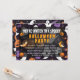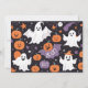 Prepárense para una celebración desconcertante con nuestra Spooktacular fiesta de baile fantasmal! Con adorables ilustraciones de adorables fantasmas bailando alrededor de alegres calabazas y juguetones murciélagos, esta invitación marca el tono perfecto para una fiesta de cumpleaños de Halloween. La vibrante paleta de colores naranja, negro y violeta, adornada con divertidos patrones de puntos polka, aporta un espíritu festivo a tu evento. Completada con una tipografía de "boo" caprichosa en un contexto nocturno estrellado, esta invitación hará las delicias tanto de los niños como de los adultos. Perfecto para una fiesta de Halloween, esta invitación es imprescindible para tus espeluznantes festividades.