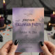 Transforme su celebración de Halloween en una fiesta de Halloween espumosa con esta invitación única. El fondo es acuarela y se desvanece de un color púrpura espeluznante a un naranja resplandeciente. El tipográfico y la estupidez de la casa y los murciélagos envueltos en la silueta le dan un toque espeluznante, asegurándose de que sus invitados estén encantados de asistir. ¡Es la manera perfecta de invitar a amigos y familiares a su inolvidable tiempo! Creado por Simply Farmhouse Press.