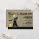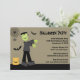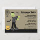 Esta invitación de la fiesta de Halloween 5x7 tiene un tema bastante espeluznante. Hay una araña colgando de una tela en la esquina, con un frankenstein caminando con dos murciélagos volando por ahí. Hay un lindo truco de calabaza o una bolsa de tratamiento a la izquierda. Puede personalizar fácilmente la información de su fiesta sobre la derecha. Derechos de autor Diseños de JD Digi
