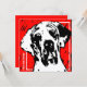 This square greeting card features a striking black and white Great Dane on a bold red background, inspired by traditional linocut printmaking, it is a linocut printing, but digitalized after printing. The minimalist, graphic design makes it a perfect little piece of art for true Great Dane friends – framed on the wall or sent with a handwritten note. Printed on quality cardstock and paired with an envelope, this card suits many occasions: thank you, thinking of you, birthday wishes or just a quiet „you get the big dog thing“. A thoughtful choice for dog lovers who prefer strong lines, few words and a lot of heart.