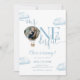Esta encantadora invitación a la fiesta de cumpleaños incluye un bonito globo de aire caliente fotográfico y nubes azules, junto con una elegante tipografía de guiones. Diseñado por Thisisnotme©
