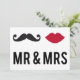 Invitación sr. y sra. con bigote y labios rojos, diseño para boda, matrimonio, compromiso, tarjetas