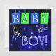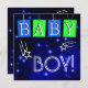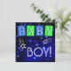 Anunciar la llegada de tu nueva estrella al mundo con estas bonitas invitaciones estrelladas con estrellas fugaces en un cielo azul de medianoche. Cada letra de la palabra "Bebé" se cuelga en una etiqueta de papel azul o verde en texto blanco que se agrega a esta invitación única. Habitación en la parte de atrás para toda la información de su personalizado sobre su bebé en el mismo fondo estrellado.