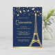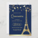 Invitación Star Confetti Gold Torre Eiffel Naval Quinceanera