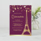 Invitación Star Confetti Gold Torre Eiffel Rosa Quinceanera