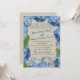Hermosa hortena azul sobre burlap y decorada con dos estampados de diseño estelar invitación a la boda para su tema de playa o la boda de destino. Personalice el texto como prefiera.