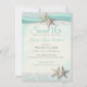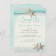 Cinta de Aqua y starfish, romántica playa dulce de dieciséis años invitada a la fiesta de cumpleaños. Doble diseño inspirado en la acuarela estelar con texto completamente editable en la tarjeta de tamaño de 4,5" x 6,25".
