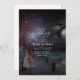 Invite a sus huéspedes a su día especial con esta invitación nupcial de ensueño, que incluye un cielo estrellado por la noche, una serena escena junto a la piscina y un romántico ilustracion de una novia con vistas al agua. Este diseño elegante y atento le da un toque de elegancia a un boda romántico bajo las estrellas. Personalizable completo para los detalles de su boda. Código QR y foto al revés.