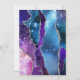 El borde izquierdo de esta elegante y moderna invitación a la primera comunión cuenta con un borde de ágata acuarela en tonos azules, rosas y moradas, salpicado de estrellas brillantes y adornado con un falso purpurina plateado. Una falsa cruz de Relieve metalizado plateado aparece encima del texto del personalizable, que combina escritura a mano, copperplate y tipografías cursivas en gris carbonero sobre un fondo blanco. El reverso presenta un diseño de agate que coincide.
