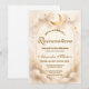 A luminous celestial design featuring delicate crescent moons and scattered constellation stars across a warm parchment background. A refined gold border frames the composition, while elegant script typography creates a graceful focal point worthy of such a meaningful milestone. The soft ivory and champagne tones give the entire piece a timeless, radiant glow. Perfect for a quinceañera celebration that feels romantic, elevated, and touched by starlight.