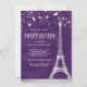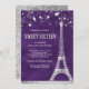 Invitación Stars Confetti Plata Torre Eiffel Morado Dulce 16