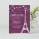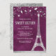 Invitación Stars Confetti Silver Eiffel Tower Plum Sweet 16