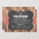 Stock The Kitchen invita con tiza, cheque rojo de madera, y una selección de utensilios de cocina y vasos. Perfecto para una fiesta de compromiso, ducha de pareja, casa nueva, etc. cambiar el texto para que se adapte a su fiesta. Se incluye la impresión posterior.