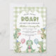 Stomp Chomp Roar Dinosaur Gingham Invitación de primer cumpleaños