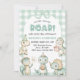 Stomp Chomp Roar Dinosaur Gingham Invitación de primer cumpleaños
