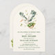 Celebrate the upcoming arrival of your little one with this charming baby shower invitation. Featuring a sweet watercolor illustration of a stork carrying a basket of fresh brussels sprouts, this design embodies the delightful 'new sprout' theme. The soft, natural color palette and gentle arch shape create an elegant and modern feel, perfect for announcing your special event. Let this adorable invitation set the tone for a joyous and memorable baby shower celebration.