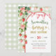 Strawberry Berry First Birthday Invitation, Pink Gingham Bow Birthday Invite, Sage Green Gingham 1st Birthday Invite