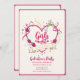 A bold Galentine's Day invitation featuring a decorative heart badge design with strawberries, champagne glasses, and a banner ribbon. The rich burgundy and gold color scheme creates an eye-catching look perfect for your friendship celebration. Fully customizable with your party information.
