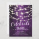 Una cadena moderna ilumina una invitación dulce de 16 años sobre un fondo morado. Vea nuestro respaldo floral correspondiente para un toque especial.