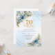 Invitación Stylish bohemian blue florals gold 70th birthday