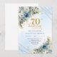 Celebrate a milestone in style with this elegant 70th birthday invitation featuring watercolor dusty blue and white flowers, soft eucalyptus greenery, and a shimmering gold frame. Designed in chic boho style with refined script lettering, this floral invitation is perfect for a classy 70th birthday party. Ideal for formal, garden, or luxury celebrations with a timeless, sophisticated touch.