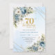 Invitación Stylish dusty blue eucalyptus gold 70th birthday