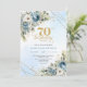 Celebrate a milestone in style with this elegant 70th birthday invitation featuring watercolor dusty blue and white flowers, soft eucalyptus greenery, and a shimmering gold frame. Designed in chic boho style with refined script lettering, this floral invitation is perfect for a classy 70th birthday party. Ideal for formal, garden, or luxury celebrations with a timeless, sophisticated touch.