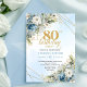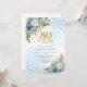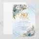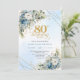 Invitación Stylish Dusty Blue Floral Gold 80th Birthday Invit