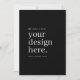 Una plantilla personalizada fácil de usar que te permite subir tu propia obra de arte desde tu dispositivo. Personaliza aún más en Zazzle con imágenes y texto o sube cualquier archivo de obra de arte (como tu propia creación de Photoshop o Canva). ¡Las posibilidades son infinitas para cualquier propósito o necesidad, ya sea personal, empresarial o para ocasiones especiales como bodas! Si necesitas ayuda para personalizar tu diseño o estás buscando un tipo de producto diferente para agregar tu obra de arte, por favor contáctame usando el botón de mensaje y estaré encantado de ayudarte.