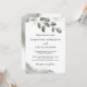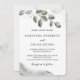 Una invitación exterior de eucalipto es una invitación bellamente diseñada que es perfecta para cualquier evento o reunión al aire libre. La invitación generalmente presenta un diseño elegante y rústico, con hojas de eucalipto verdes y exuberantes como punto focal principal. Las hojas a menudo sirven como un borde natural o marco para el texto y los gráficos de la invitación, creando una apariencia sofisticada e invitadora.