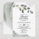 Una invitación exterior de eucalipto es una invitación bellamente diseñada que es perfecta para cualquier evento o reunión al aire libre. La invitación generalmente presenta un diseño elegante y rústico, con hojas de eucalipto verdes y exuberantes como punto focal principal. Las hojas a menudo sirven como un borde natural o marco para el texto y los gráficos de la invitación, creando una apariencia sofisticada e invitadora.
