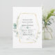 Cena de boda herbario de bosque silvestre eucalyptus con marco geométrico dorado diseñado para ser rápida y fácilmente adaptada a las especificaciones de tu evento.