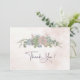A wedding thank you card with succulent bouquet in green and blush
