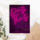 La invitación minimalista con diseño de luces Neon y el color rosa Fuschia se utilizaron en el título para darle a la invitación un aspecto tentador con granito violeta oscuro como textura en el fondo para que coincida.